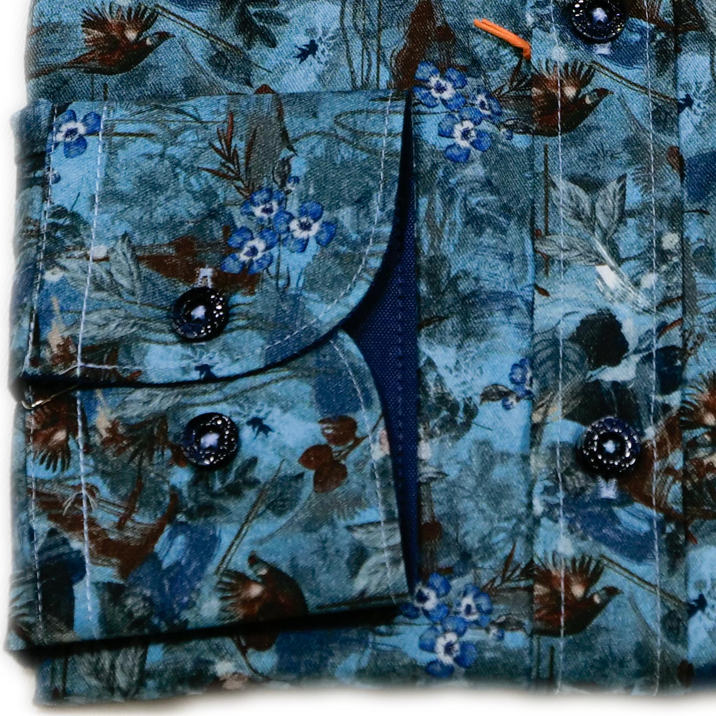 A Fish Named Fred blue shirt with autumn pheasants. A great design with lots of intricate detail and a lovely autumnal theme.